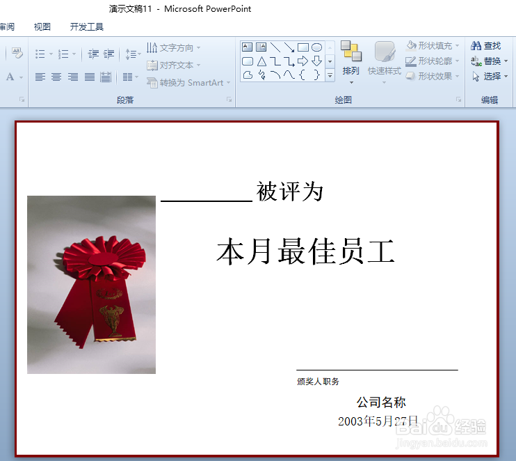 ppt2010如何制作月度最佳员工奖