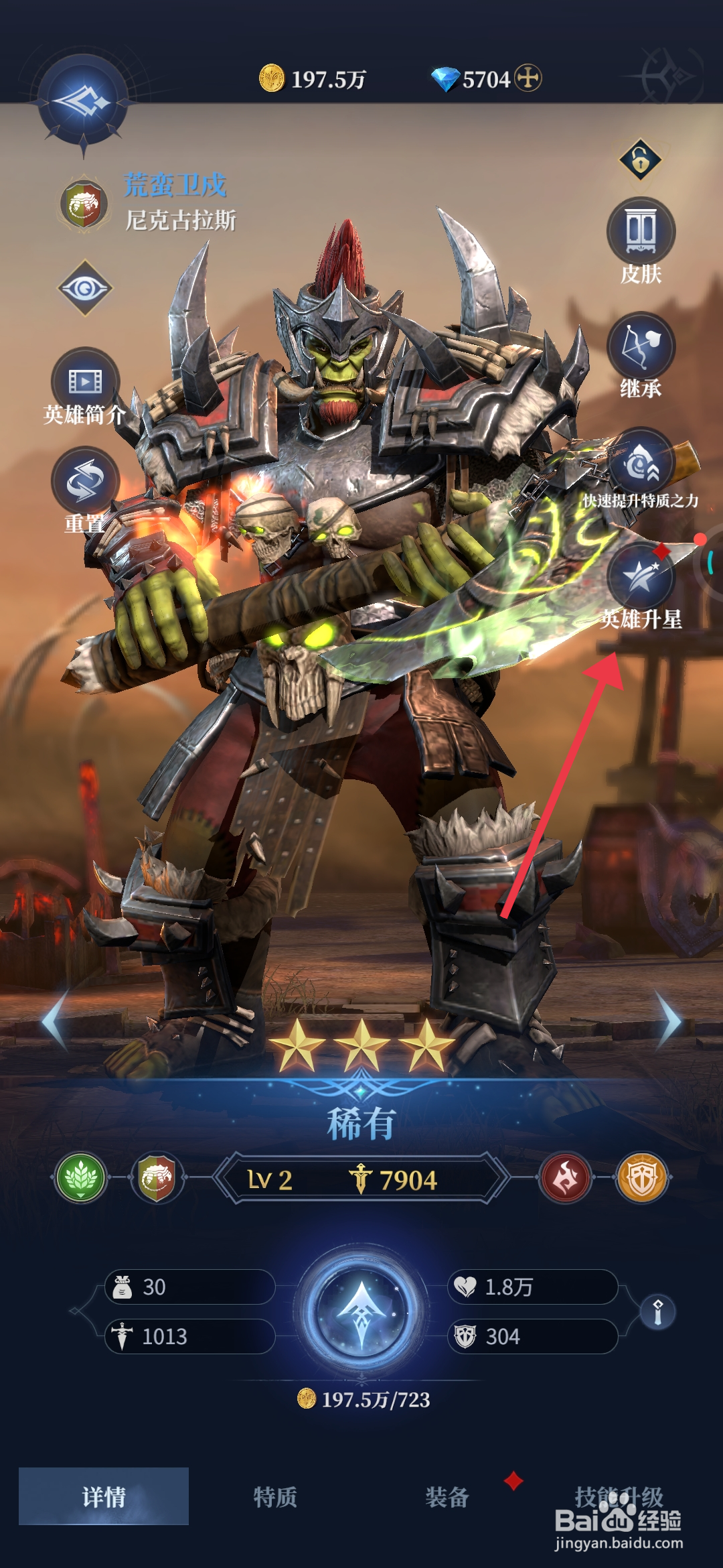 2、进入尼克古拉斯界面后,点击【英雄升星】图标。