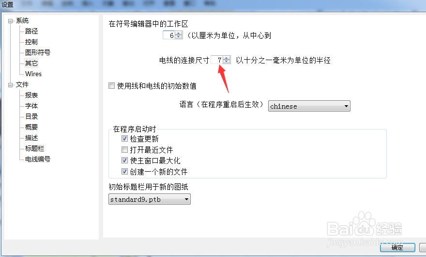 4、在电线的连接尺寸中输入8选项之后,点击确定