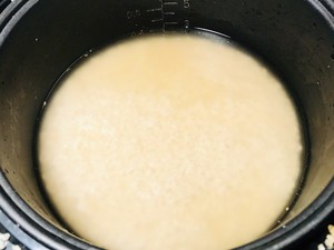 4、电饭锅开煮精米模式(就是时间最长的模式),煮到8分熟开盖(大约25-30分钟);加入切好的香菇、腊肠,打入2-3个鸡蛋,盖盖继续焖煮大约15-20分钟;