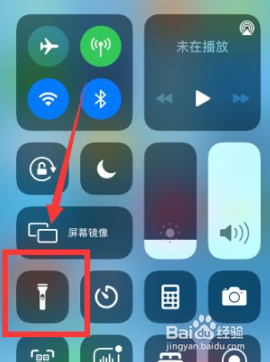 1、首先打开手机向下拉调出控制中心界面,,点击手电筒图标,如下图所示