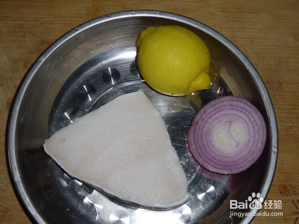 2、将鳕鱼抹上盐、黑胡椒粉、橄榄油、放上葱、洋葱,挤点柠檬汁再倒点白葡萄酒腌制1小时左右