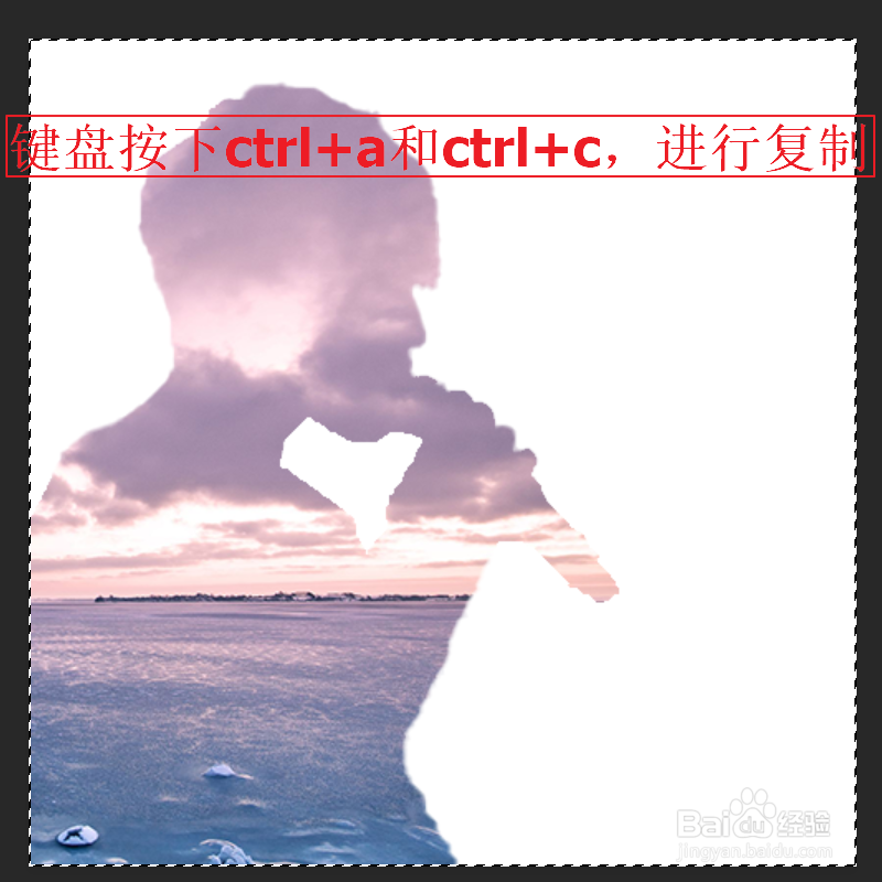 1、打开照片,键盘按下ctrl加a和ctrl加c,进行全选复制。