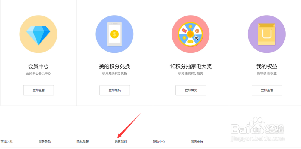 2、在电脑端我们把网页拉到最下面,下面有个联系我们,点击联系我们;