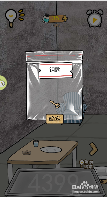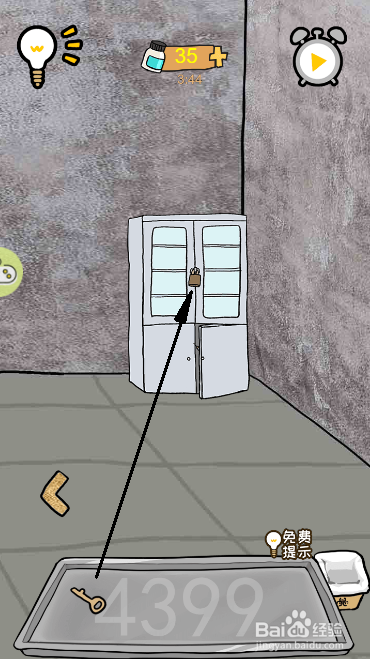 2、再转到第三幅图,用钥匙打开上面的柜子