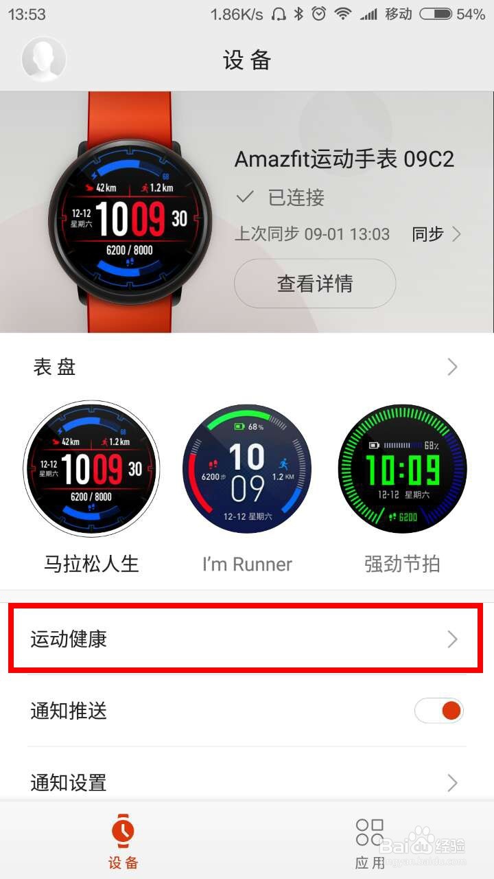 1、从主界面向右滑动进入“运动”,选择“跑步”或“健走”任一模式;