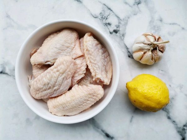 11、腌制好的鸡翅放在烤炉上,铺上柠檬片,期间翻面2次烤至熟透,边烤边刷酱汁,