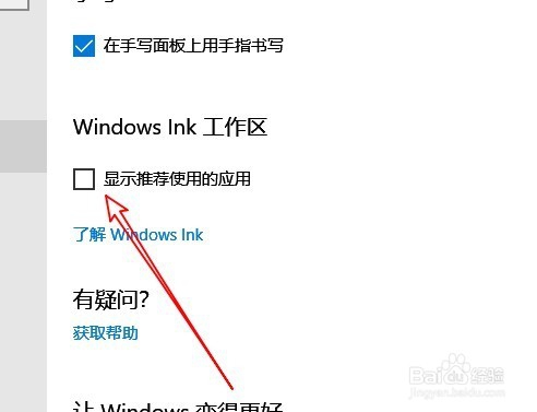 6、我们把该设置项前面的勾选去掉,重新启动计算机后,就不会再在Windows INK菜单中出现推送的广告了。