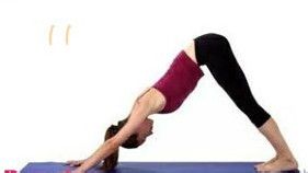 3、如图3,脚心掌心贴地,身体打直,绷紧双腿,整个身体呈倒V字,坚持10个呼吸。熟悉瑜伽的朋友会知道这是瑜伽基本姿势中的一种——下狗式,此动作具有提臀瘦腰的功效。