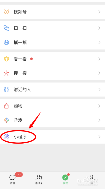 1、打开手机微信进入后,点击下方的【发现】选项。