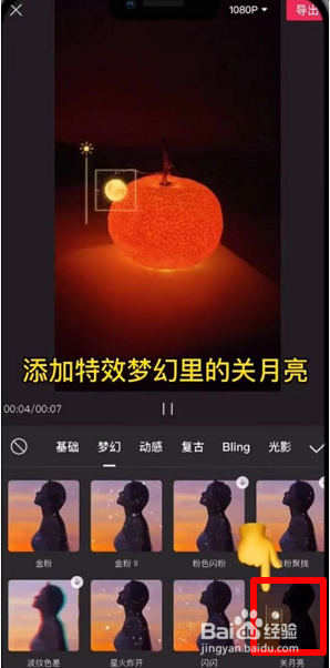 1、准备一个沙滩橘,打开手机的手电筒,关掉房间里的灯,开始拍摄,把橘子放在手机手电筒上。
