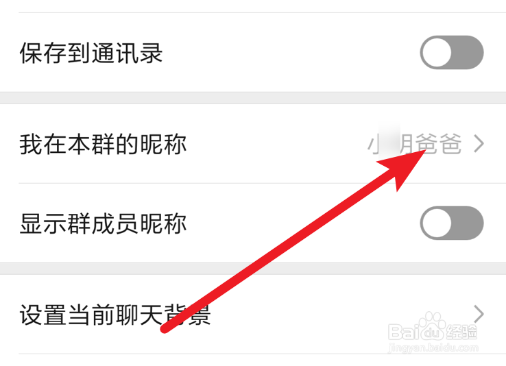 4、打开了微信群的设置页面,可以看到这里就有一个‘我在本群的昵称’的选项。