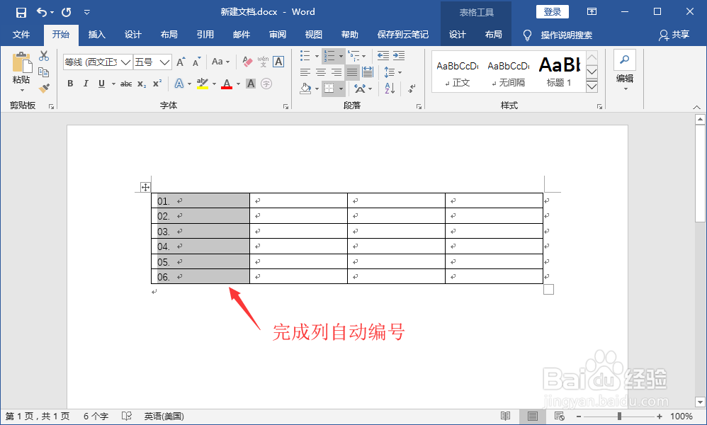 5.表格自动编号完成,效果如图
