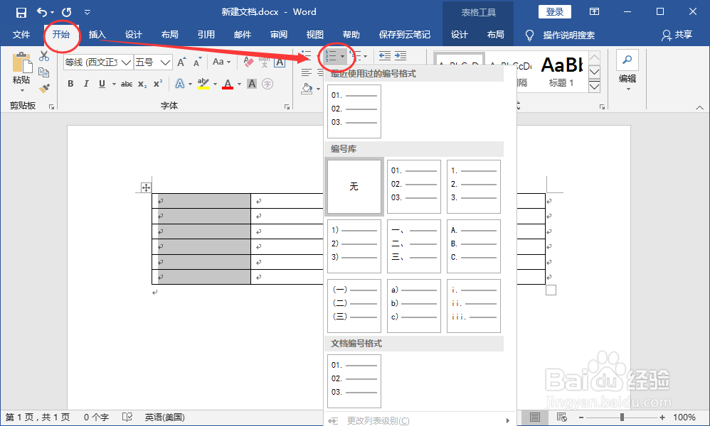 4.从编号库,选择一个编号样式。如图
