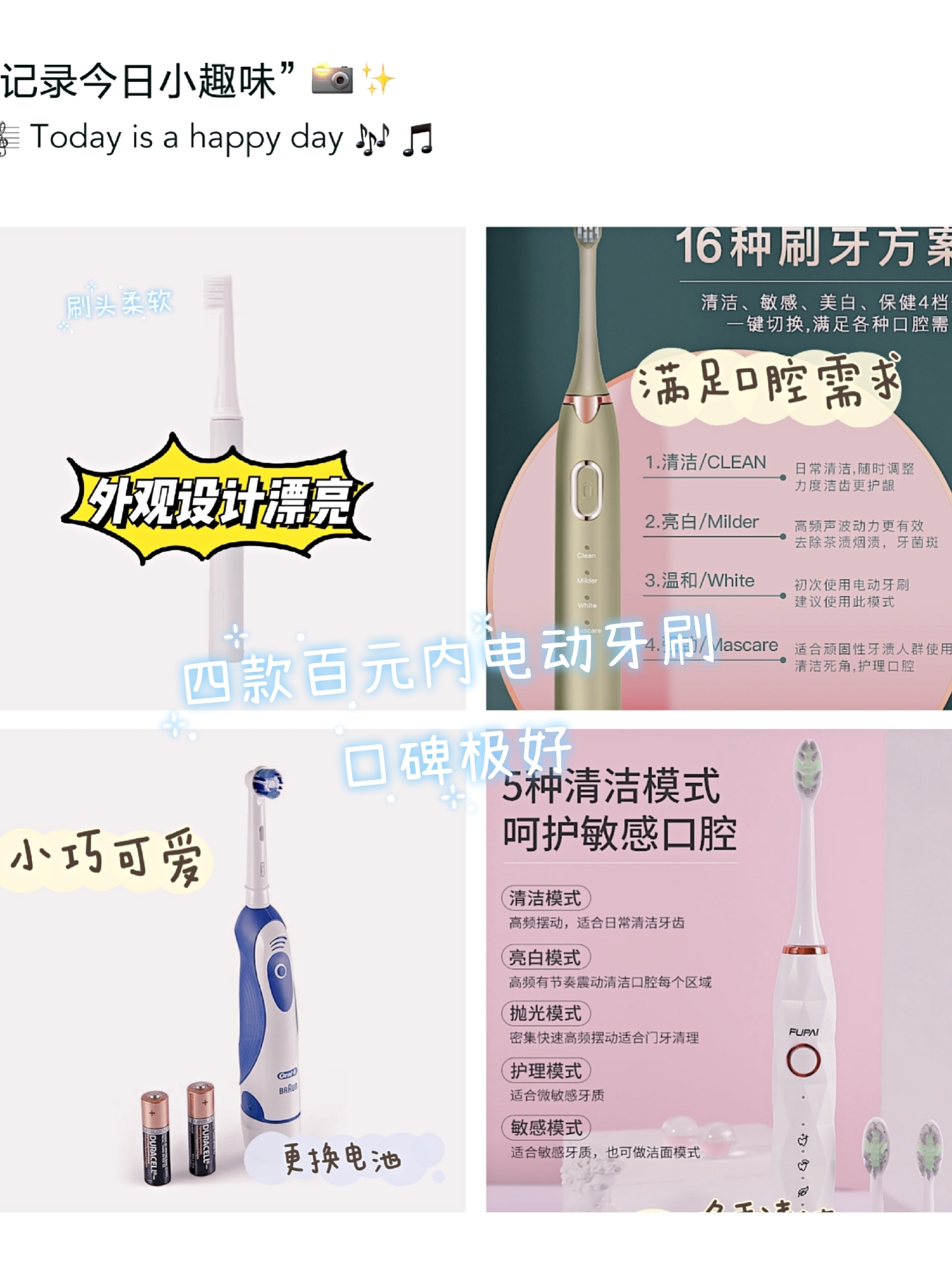 日常好物分享~四款百元内的口碑多功能电动牙刷~