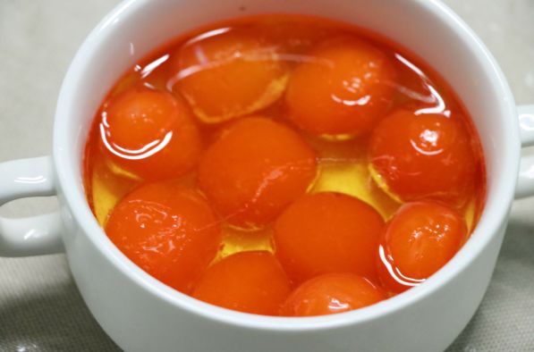 4、烤好的咸蛋黄取出等待凉却,咸蛋黄切记不要烤的裂开或出油。