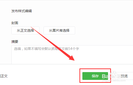 4、文章最终编辑完成以后,点击【保存】,可点击【预览】查看效果,确认无误后点击【保存并群发】即可。