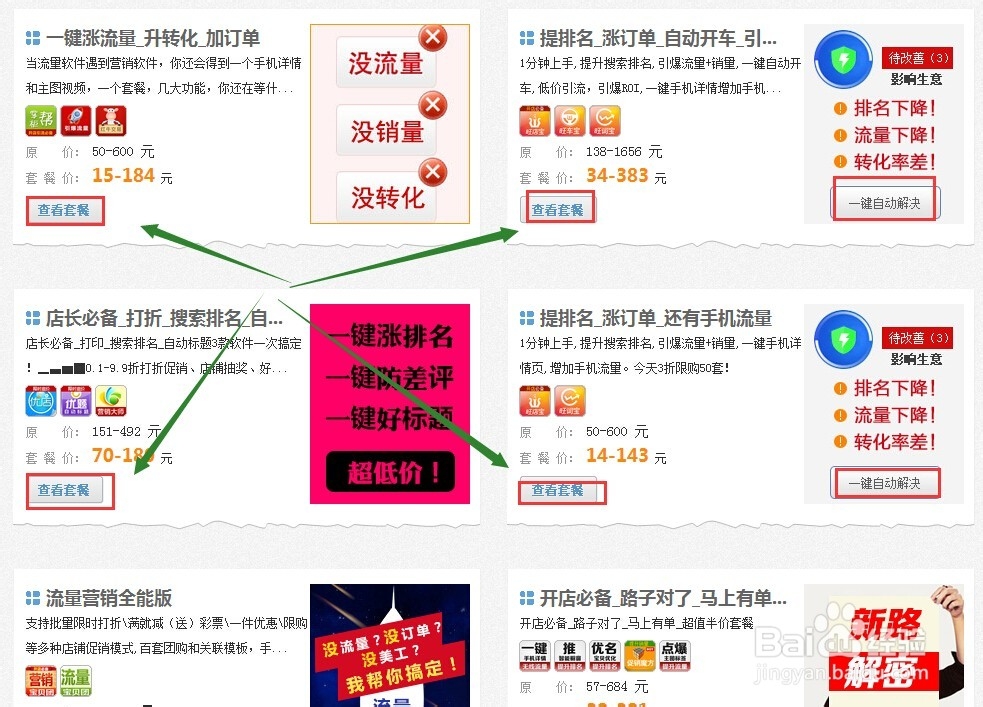 7、拉动网页,可以看到还会有更多的套餐工具列出来;下面都会有一个“查看套餐”按钮。