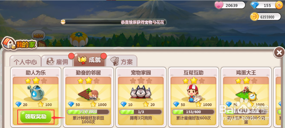 9、我们就成功领取了勤奋的邻居二星成就奖,获得了200经验值和40钻石。