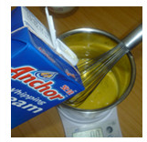 1、鸡蛋打散,依次加入淡奶油、牛奶、香草精,每加入一种都快速打发起泡,混合均匀