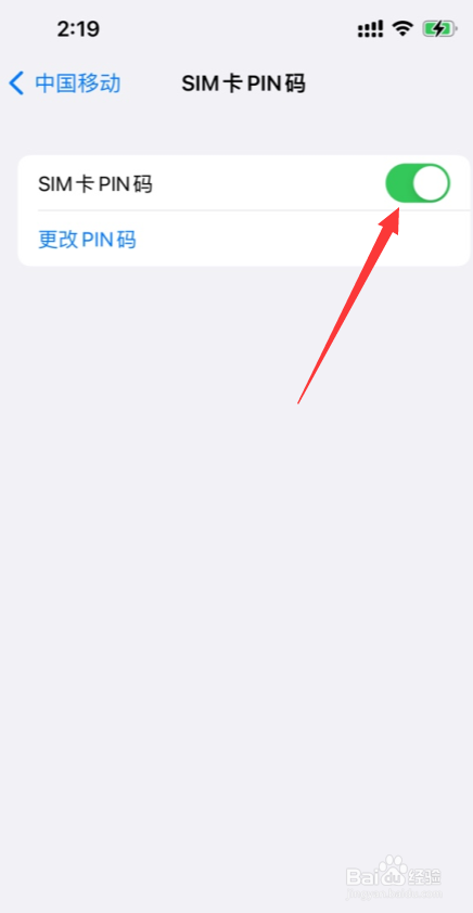 5、点击SIM 卡 PIN密码后面灰色按钮