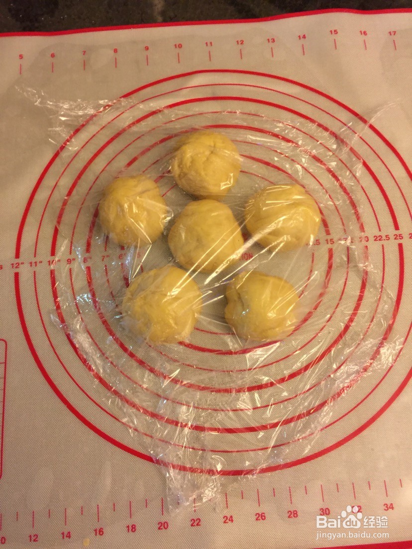 5、发好的面团整形揉面排气分成5-6个剂子 保鲜膜盖着 松弛10-15分钟