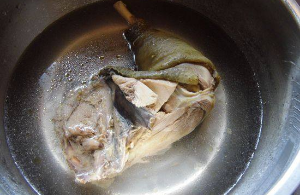 1、土鸡半只,锅中装适量水,加姜片和葱段,冷水加入鸡,盖上锅盖,大火煮开后,开中火煮十五分钟后关火焖10分钟