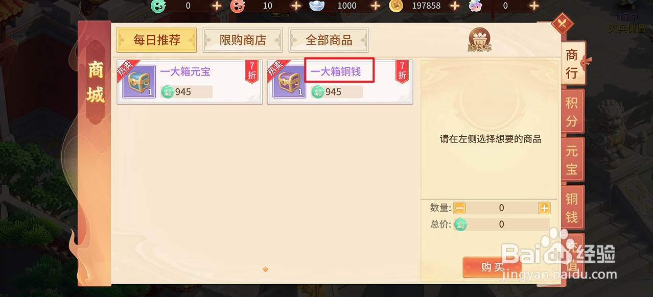 2、进入后,点击页面中的【一大箱铜钱】图标。