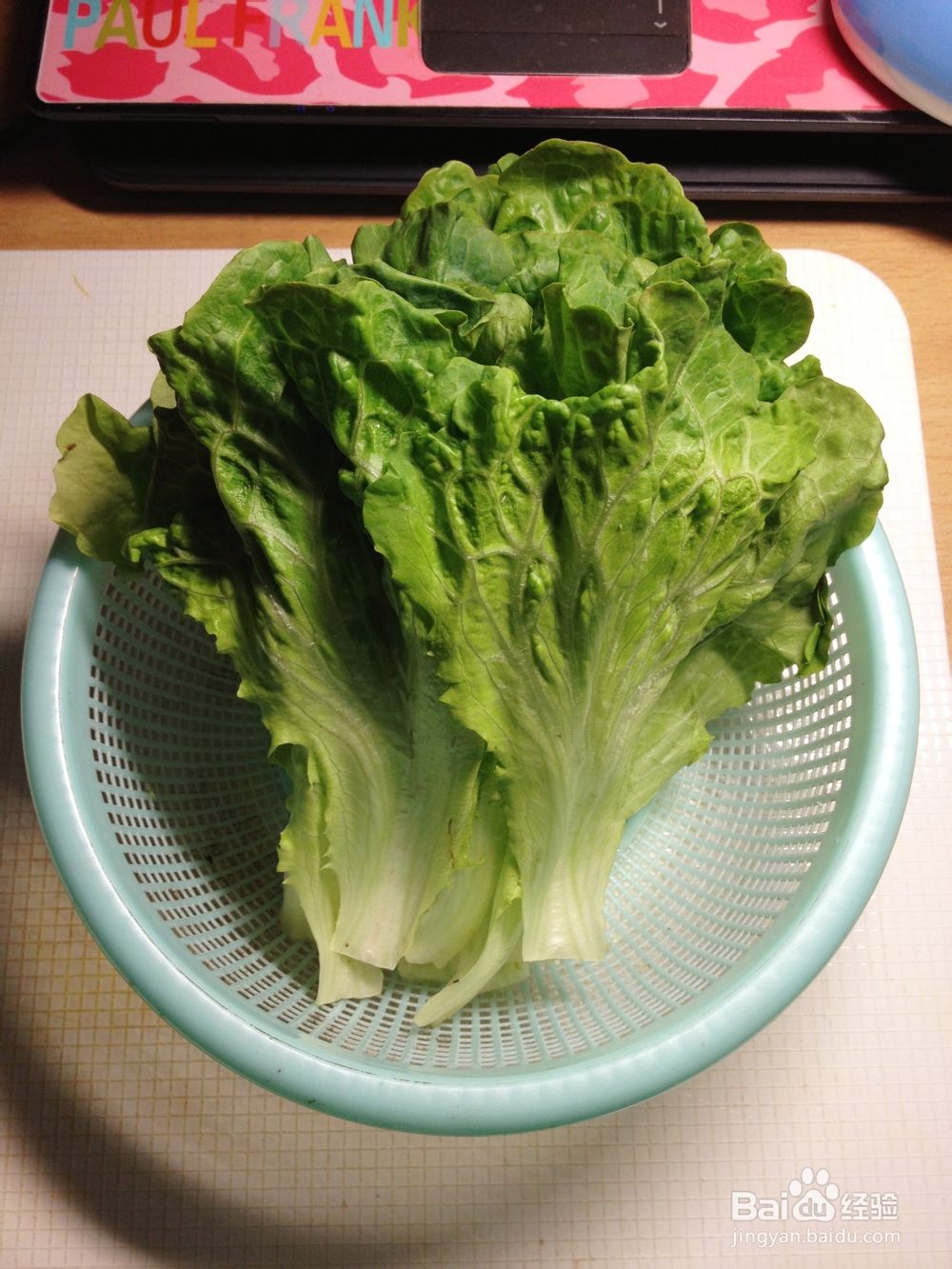 7、将生菜倒入沸水中,大约半分钟后即可沥干水分捞入碗中;