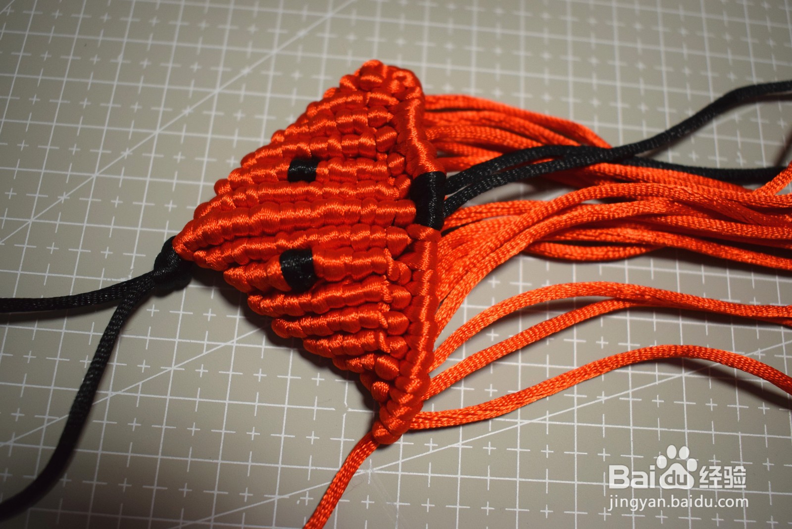 7、所有绳子都按照以上方法操作,虾头编织完毕。