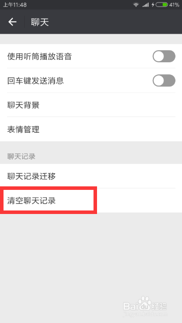 3、在“聊天”选项卡界面中,点击“删除聊天记录”项,此时就可以实现微信聊天记录的批量删除了。
