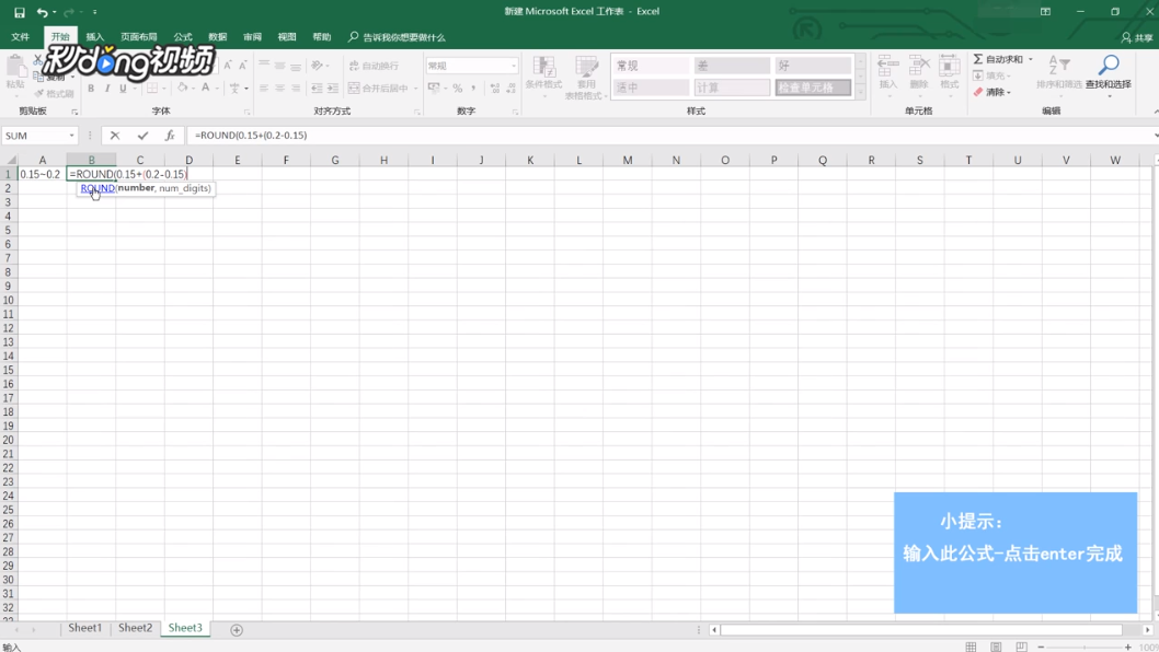 3、输入公式“=ROUND(0.15+0.2-0.15)+rand0.3”。