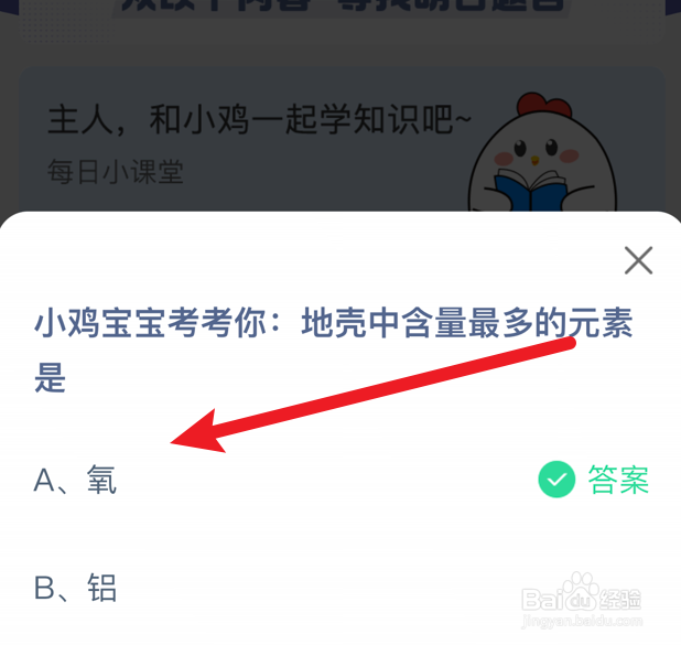 2、查看今日的题目:地壳中含量最多的元素是什么?
