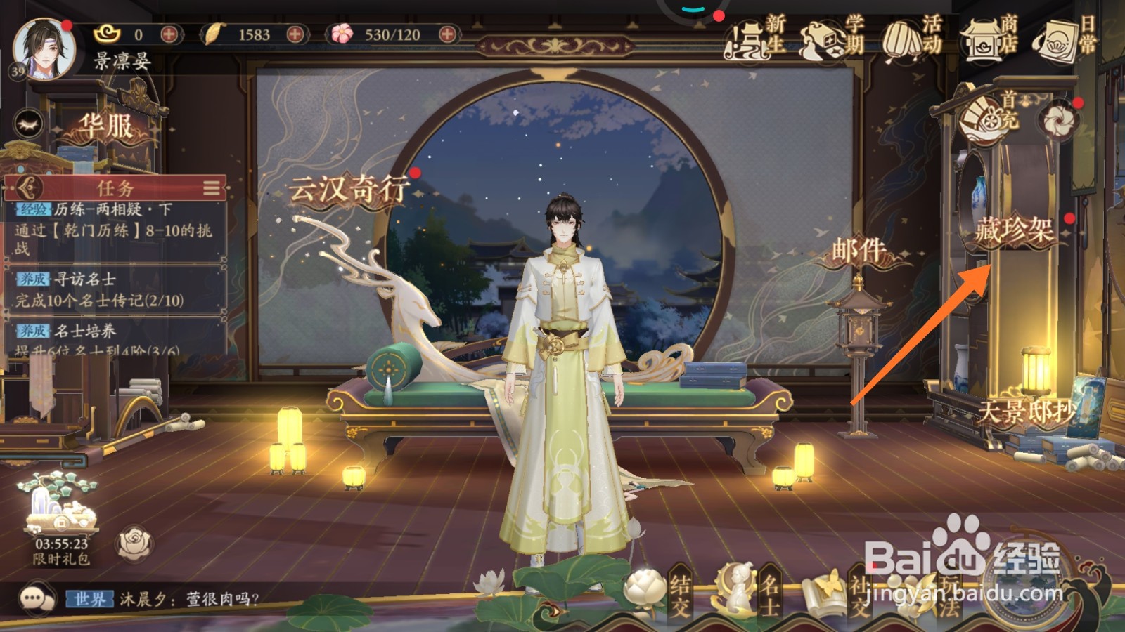 2、在打开的藏珍架中,点击其中的书院成就,接着选择学识图标。