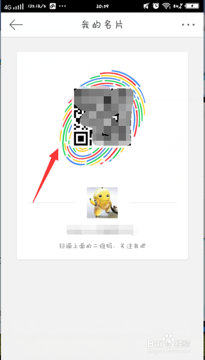 4、这时候,扫二维码区域的正下方就有你的二维码名片。点击就进入了