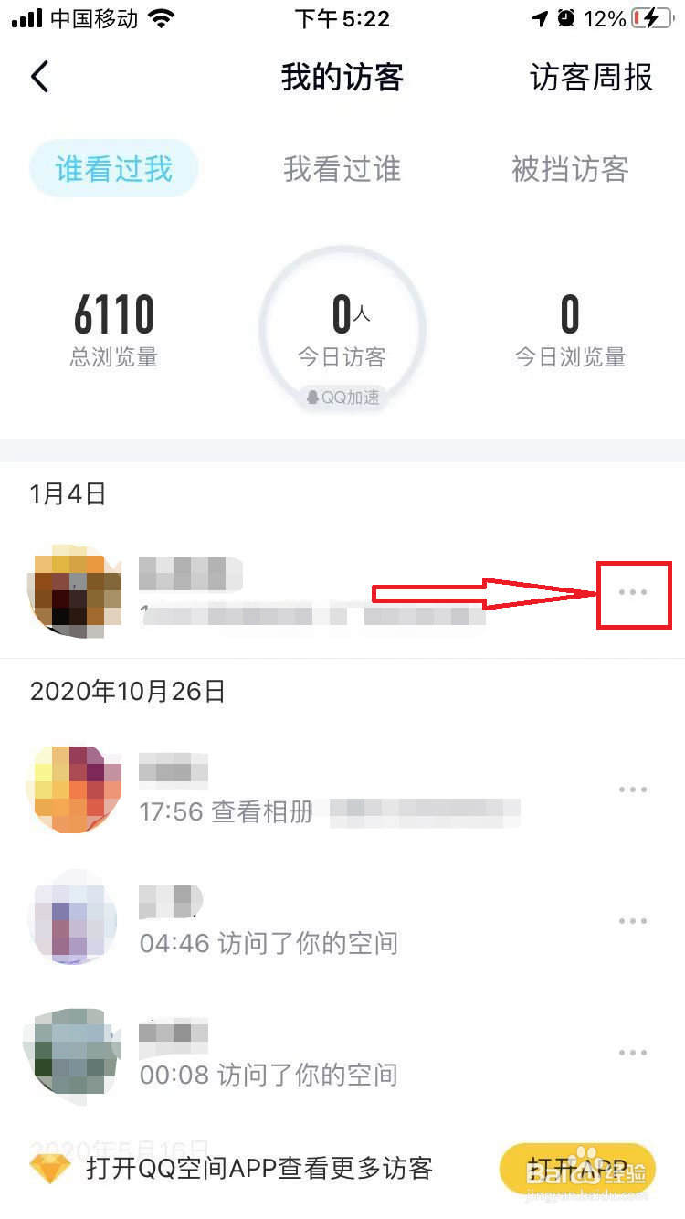 4、找到需要删除的访客记录,点击后方【···】的图标,如图: