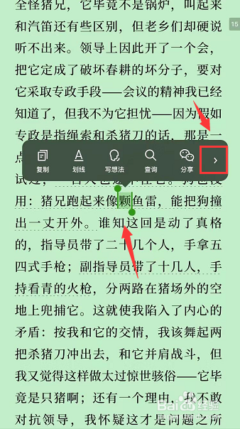 5、然后长按这个字点击 写想法,如下图