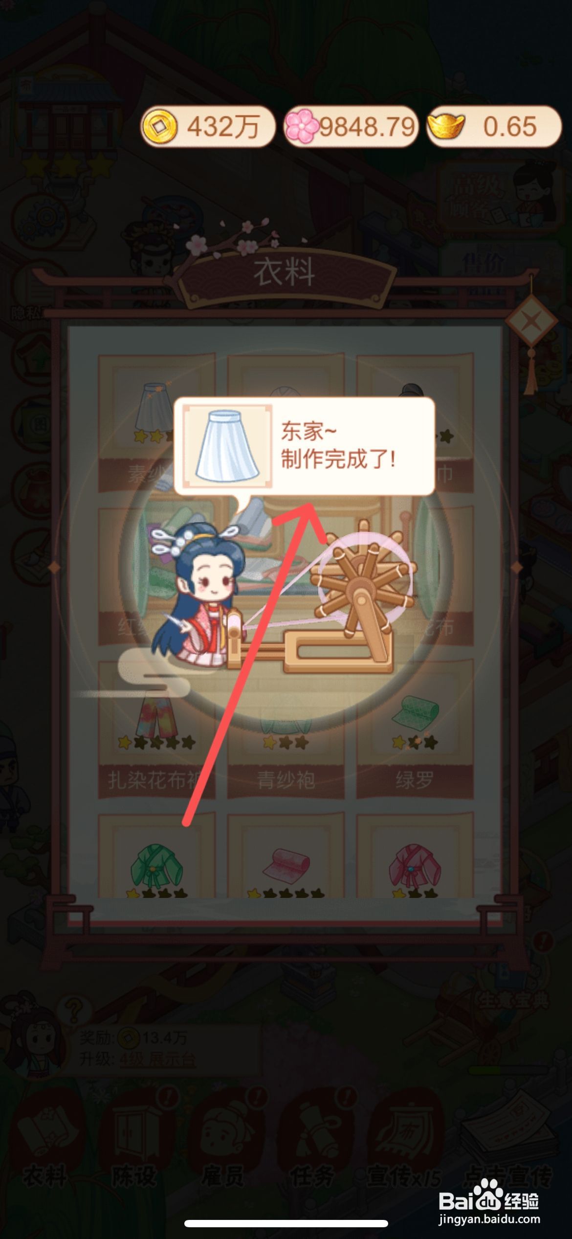 4、最后,如下,提示东家制作完成了,即可完成素纱裙的制作了