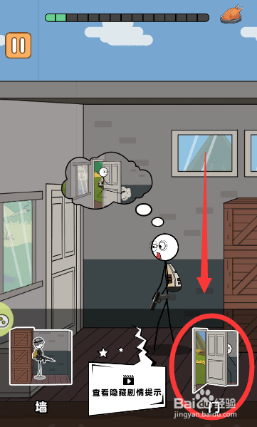 3、火柴人打开门,这样火柴人就可以在门后攻击对方了。
