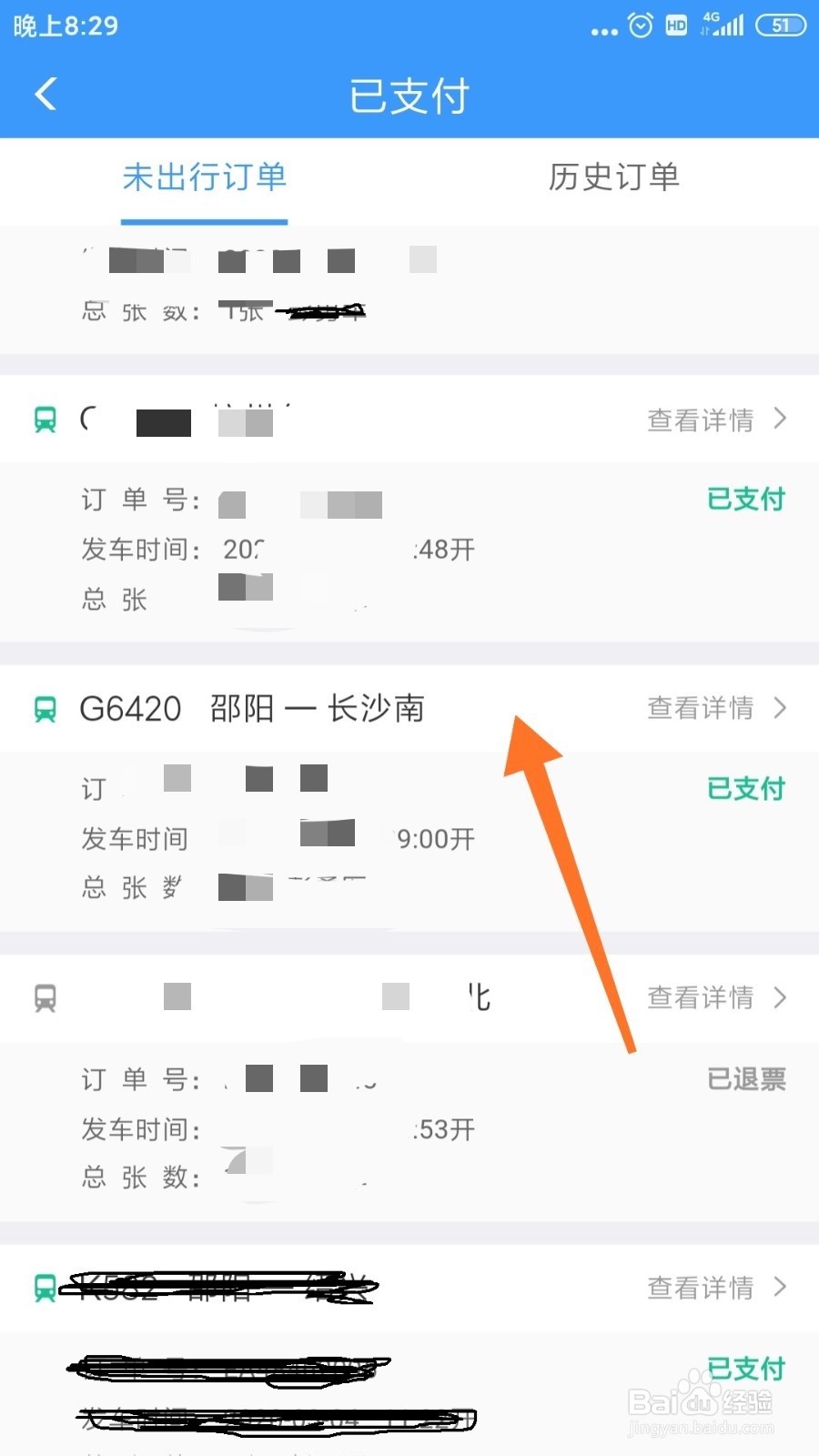 2、打开12306客户端,切换到“订单”页,点击“已支付”图标。