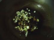 6. 油热放入葱花炝锅,加入少许酱油,少许盐。