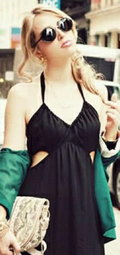 3、可以穿黑色的连衣裙显瘦又很简约时尚。