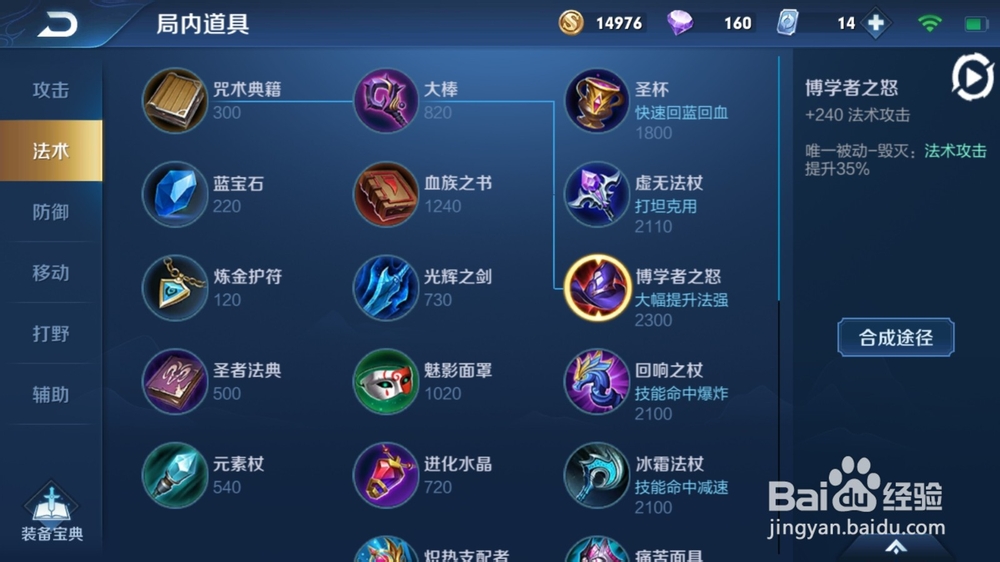 3、第3件装备选择博学者之怒,这件装备可以最快速的提升法强。