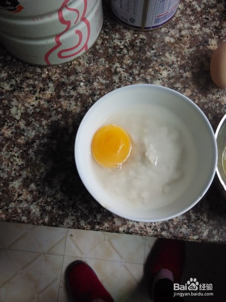 1、先调好米粉,把鸡蛋打入另一个碗,