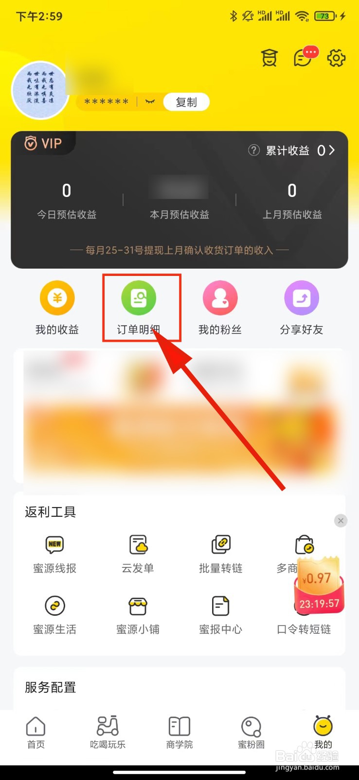 在弹出的页面中,选择头像下方的"订单明细"设置。