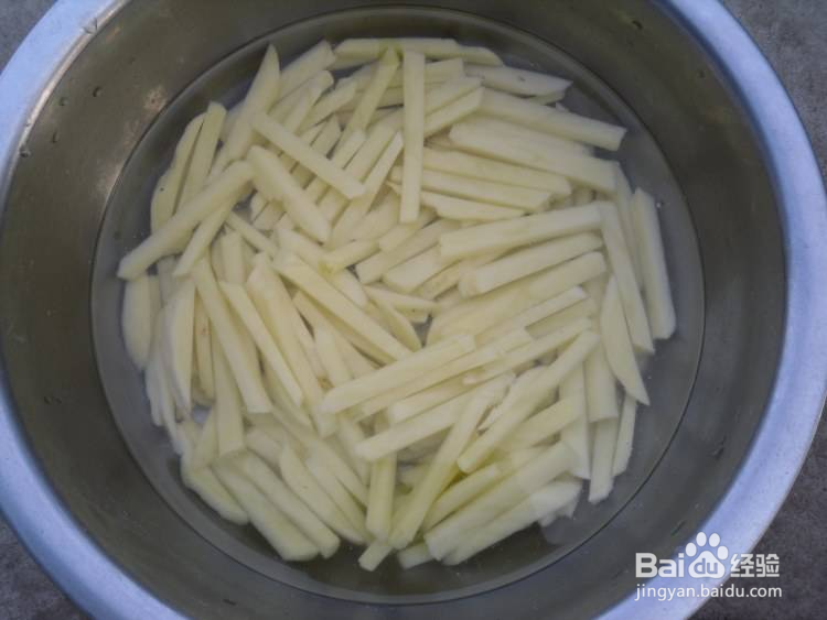 1、将土豆去皮洗净,切成长条状,用清水洗几遍去除淀粉;