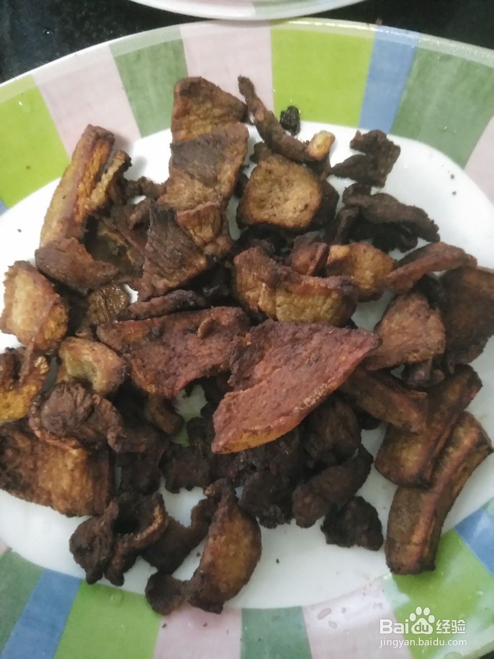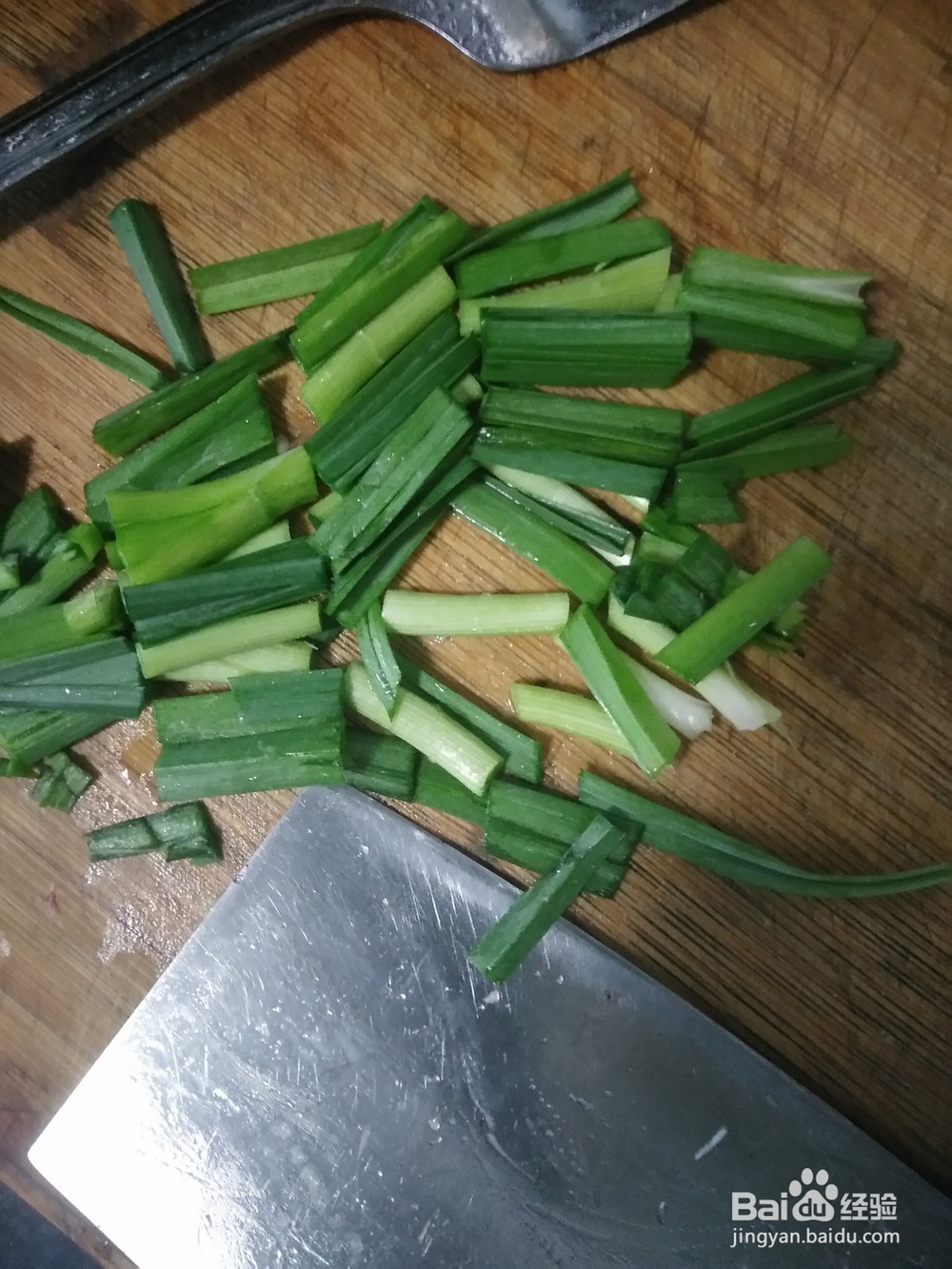 1、将大蒜苗切成段待用,焅好的油滋准备好