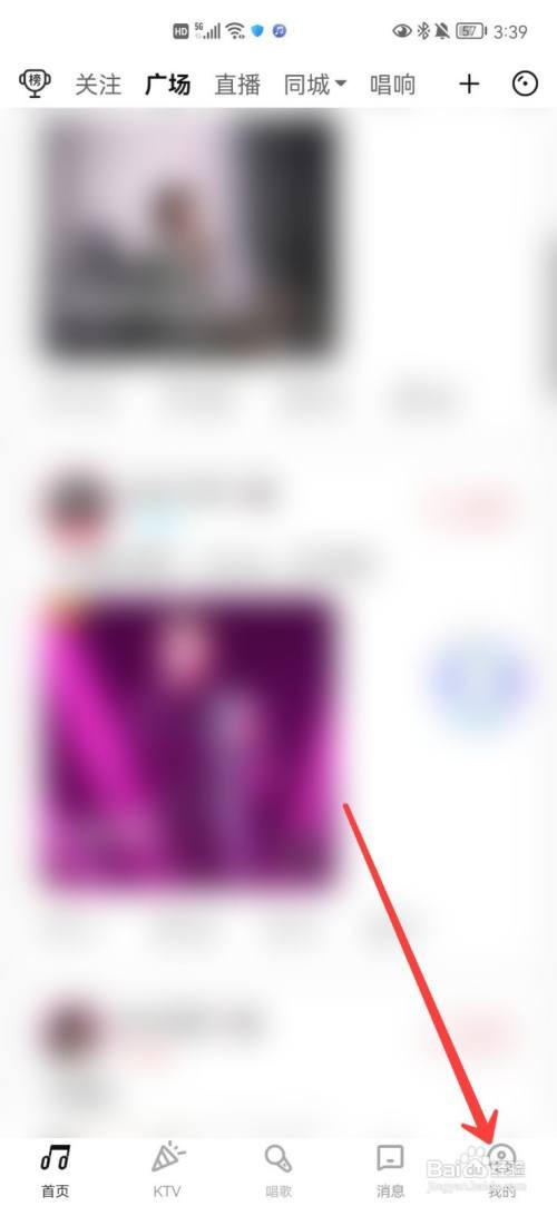 1、第一步、打开唱吧,点击右下角我,如图中箭头所指;
