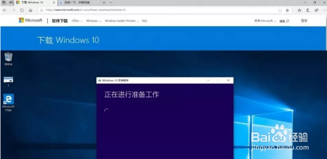 9、自动下载windows10界面,当进度加载到100%时,下一步按钮可选择时,点击下一步。