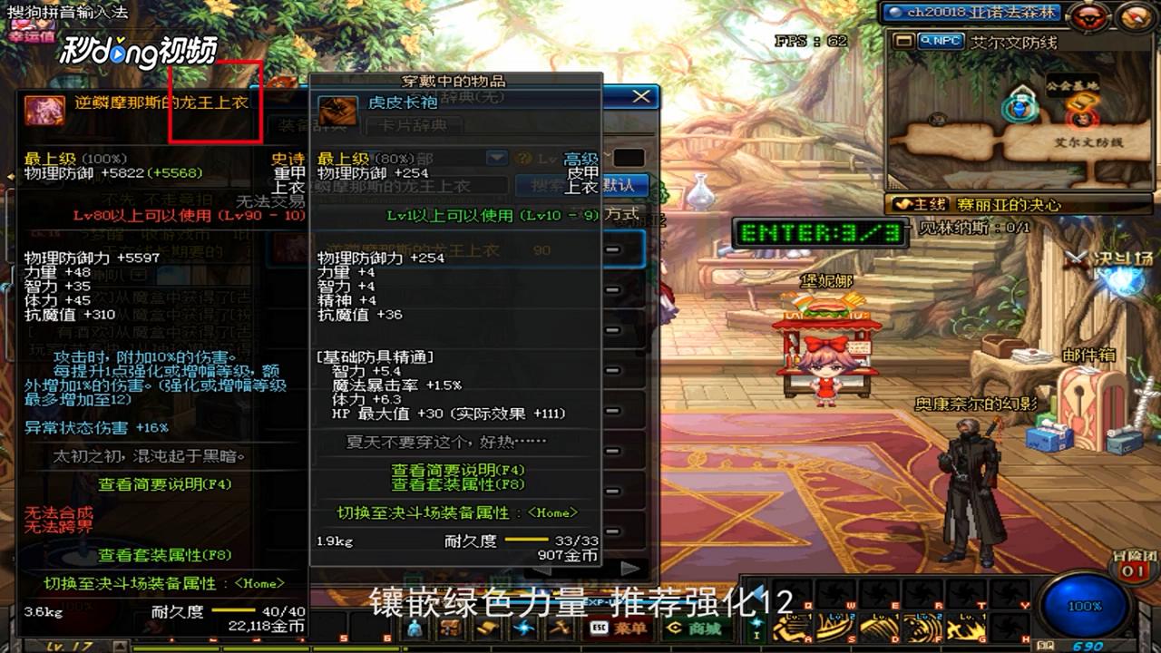 2、强化和增幅,由于头肩自带的属性推荐,上衣附魔生肖蛇镶嵌绿色力量,推荐强化12。